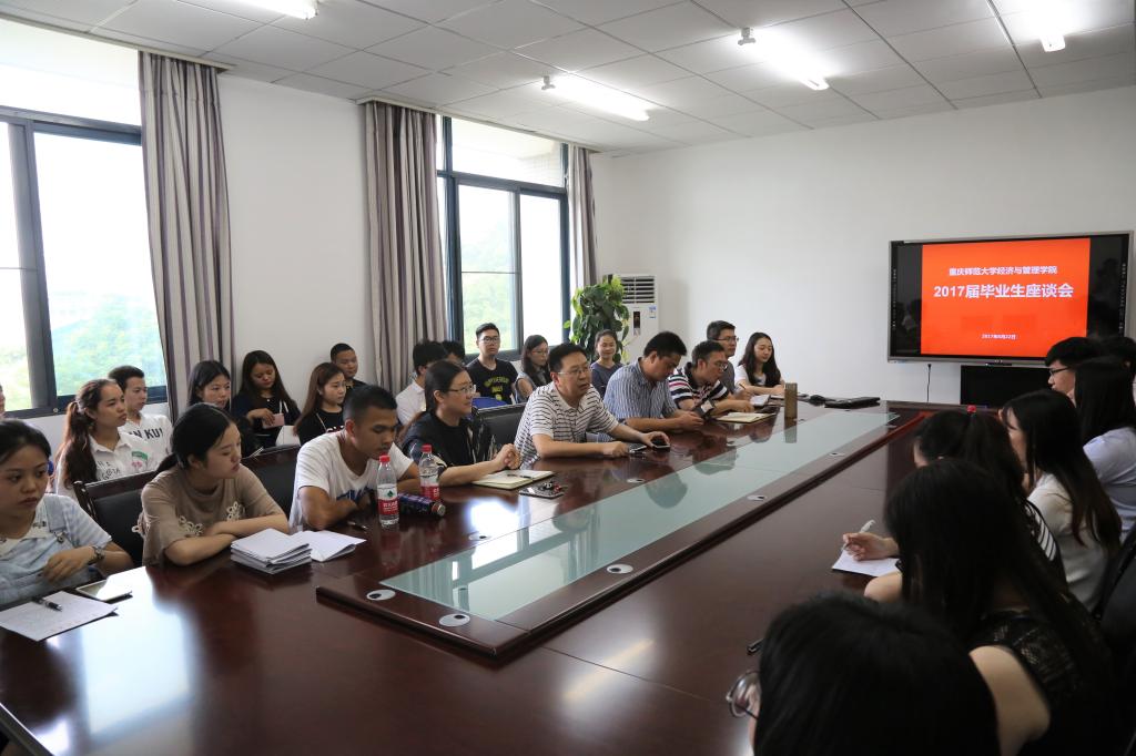 2017年6月22日下午四点半,我院在学院楼311会议室召开2017届毕业生座谈会。best365网页版登录党委书记税强、院长田盈、副院长陈道平、党委副书记任源钢、团总支书记朱旭森、毕业生辅导员张莉以及35名毕业生代表出席本次会议。