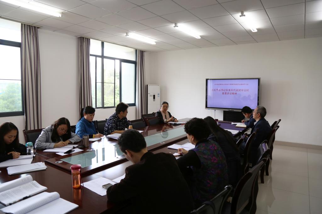 会上,分党委书记税强组织全体党委委员及支部书记学习了习近平总书记在重庆代表团审议时的重要讲话精神。总书记的重要讲话高瞻远瞩、统揽全局,思想深邃、内涵丰富,情真意切、语重心长,具有极强的思想性、指导性、针对性,是我们重整行装再出发最重要的思想武装,是做好重庆各方面工作最切实的行动指南,体现了国家掌舵者、人民领路人对重庆的关怀和厚望。