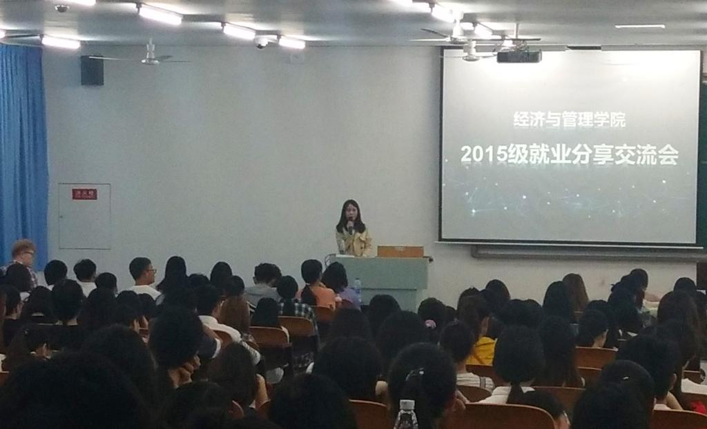 为了使学生能够尽早明确未来就业方向,提升对工作的了解和认识,增强就业信心,2018年5月13日晚上6点,best365网页版登录于特教楼T2507教室举办2018届毕业生就业经验分享交流会。2015届毕业生代表李贞贞、郑昭、涂平同学担任主讲,best365网页版登录大一至大三学生出席了此次交流会。