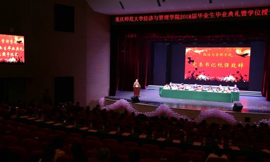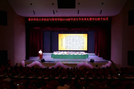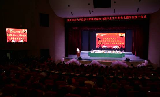 2014年6月14日,best365网页版登录于校友会堂举行2018届毕业典礼暨学位授予仪式。重庆师范大学教务处处长、best365网页版登录学位分委员会主席田盈,best365网页版登录党委书记税强、副院长喻科、副院长陈道平、党委副书记任源钢以及经管学院全体教职工与毕业生和家长代表们分享了这一神圣、难忘的美好时刻。