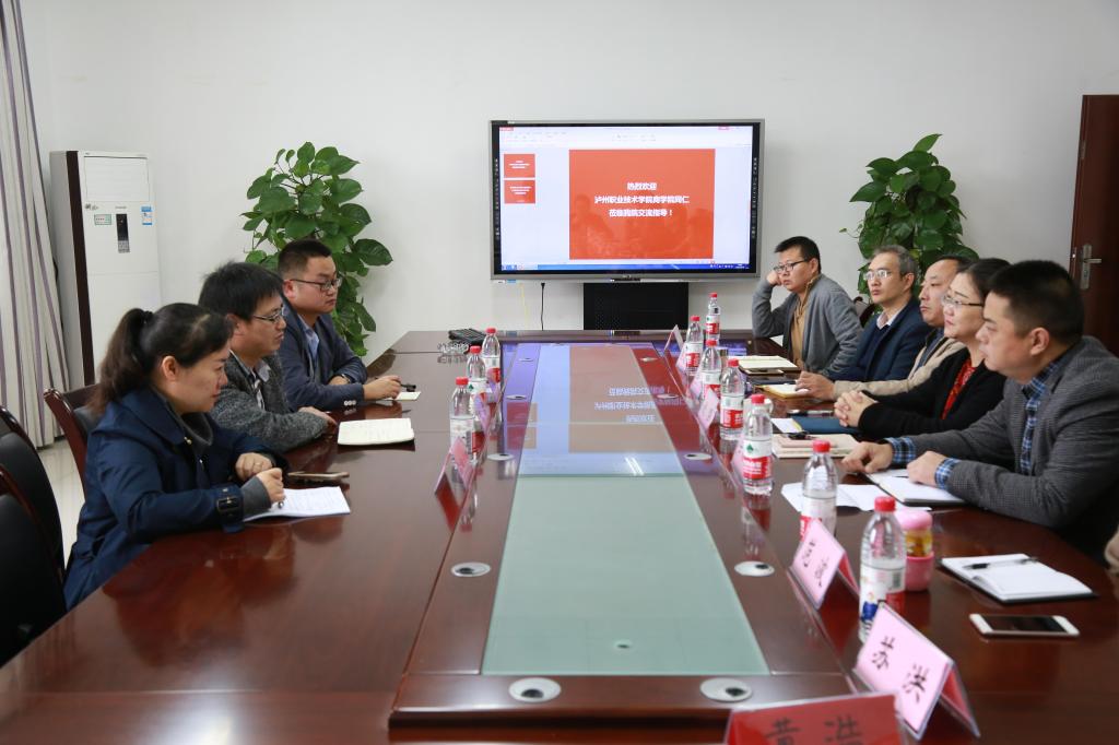 2018年10月30日上午,泸州职业技术学院商学院的党委书记熊剑、副书记欧阳宏虹及其副院长郎润华到访我院,与我院党委书记税强、党委副书记任源钢以及副院长陈道平、喻科等领导老师于汇贤楼311会议室进行合作与交流。