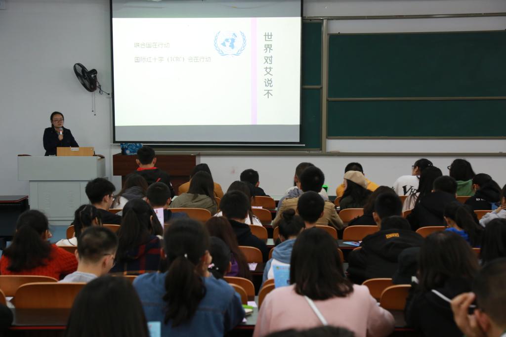 为深入落实与执行党和国家的艾滋病防治政策,促进大学生了解艾滋病防范知识,增强艾滋病防范意识,2018年10月28日晚,我院在励志楼2507室开展了防范艾滋病主题宣传讲座。本次讲座由工商管理专业2班的唐薄辰与经济学专业2班的付童戈主讲,在辅导员胡雪梅老师和柴风梅老师的组织下,我院2018级全体新生到场聆听。