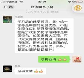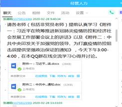 1、2月和3月,学院教工党支部积极开展线上组织生活,通过导背景、导结构、导重点、导内容、导思想的“五导”学习模式,组织广大教职工利用QQ等在线平台自学相关学习文件、分享学习心得体会、结合自身专业背景开展深入讨论。如行政支部在3月底“坚定理想信念、永葆政治本色”的主题当日活动中,黄浩、邱旭两位同志作为本次导学党员,向支部全体党员分享了疫情防控中的先进人物先进事迹,通过对先进人物事迹的学习,引导党员们深入思考本次主题教育的本质。