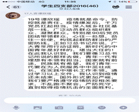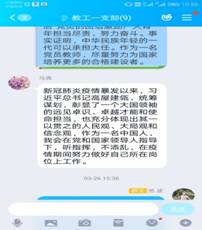 2、学生党支部创新组织生活形式,制定每周支部学习计划,通过自学成果检测的方式分享学习成果、巩固强化学习效果,通过语音领学、语音会议、小组讨论等方式学习先进人物先进事迹,通过微信图文推送开展党员志愿者科普活动、宣传防疫相关小常识。
