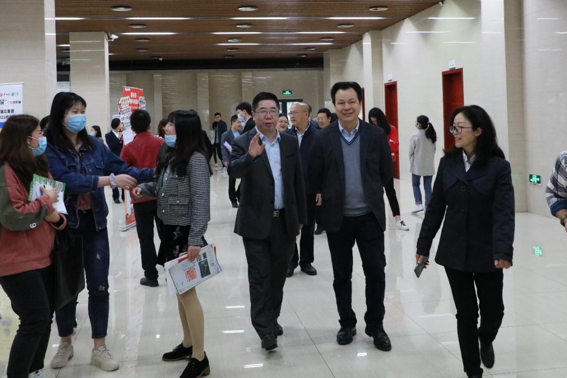 为更好地搭建毕业生就业平台,拓宽就业渠道,促进毕业生充分就业,2021年4月9日上午,由重庆师范大学、重庆市人才大市场集团有限公司(重庆人才网)主办,重庆师范大学招生就业处、best365网页版登录承办的“拼搏·不负青春”2021届毕业生春季大型双选会于博雅楼一楼大厅成功举行,校党委书记曾礼、校长孟东方等校领导一行到双选会现场与用人单位和毕业生进行了深入交流。