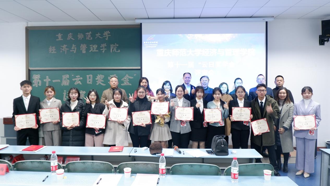 在精彩激烈的答辩后,评委根据选手们综合表现商讨评审结果。最后,经过评审专家的激烈讨论,罗冬蓉、冯欢欢2位同学获得一等奖;诸建青、杨晓清、蔡畅3位同学获得获得二等奖;李明珍、郑燃燃、瞿苏艺、彭晓燕、冉娅、朱永琴、罗泽江、柳家蔚8位同学获得获得三等奖。陈再丽女士在总结点评中高度肯定了同学们的精彩表现,并从专业学习、社会实践、人生规划和学院资源架接四个方面向选手们提出建议。最后,学院领导和云日集团代表为获奖者颁奖,活动大会取得圆满成功。
