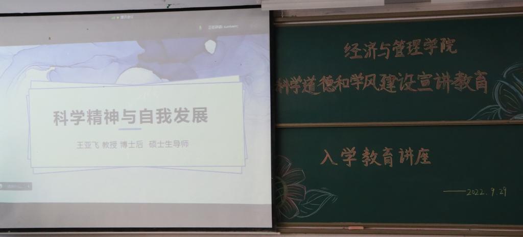 传承精神力量,涵养优良学风。为进一步加强我院学生学风道德建设,我院特邀王亚飞教授于9月29日下午两点半在特教楼2315室,为我院22级新生开展“科学道德和学风建设宣讲教育”入学教育讲座。本次讲座采取线上线下同时进行的方式,我院22级新生悉数到场。
