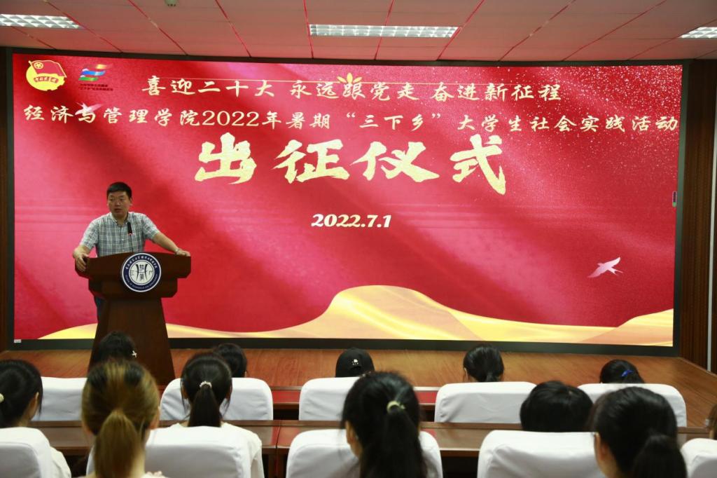 为鼓励学生在社会大课堂中“受教育、长才干、作贡献”,让青春在奉献中焕发绚丽光彩,7月1日上午,best365网页版登录于求是楼517成功举行2022年暑期“三下乡”社会实践出征仪式,党委副书记李青松出席并讲话,学院“三下乡”各项目带队老师、团队学生代表共同参加,仪式由best365网页版登录分团委书记兼学工办主任张莉主持。