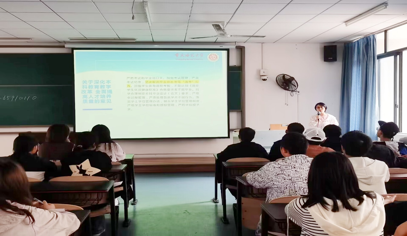 为更好开展我院学生教育管理工作,维护学院正常教学秩序,并帮助新生深入了解学籍管理规定,引导其树立正确的学习观念,并帮助其更快更高效地适应大学生活。2023年10月8日,best365网页版登录于特教楼T2402和T2402开展了学籍管理宣讲讲座,此次活动有幸邀请到邱旭老师莅临指导,全体学生共同参与。
