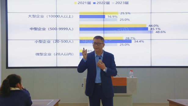 为进一步提升学生求职能力,下午三点,我院面向人力资源管理专业学生于求是楼131组织开展“人资专业在校如何锻造为优秀的HR”生涯规划讲座。讲座中,国家一级企业人力资源管理师、优秀校友钟国才围绕职场招聘与人力资源管理、当代社会的职业选择与发展、提升自己优势与应对挑战的方法、职场成长与个人发展规划等多个方面展开分享。他指出,在当今社会的各种行业中,各种新兴产业正在崛起,如何把握住机遇,显得尤为重要;并带领学弟学妹们深入探讨了提升自身优势与职业素养对于求职的重要性以及工作目的与实现个人价值的关系。此外,钟国才校友强调了掌控主动权以及克制欲望的重要性,并表达了对大家“前程可奔赴,岁月可回首”的美好祝愿。