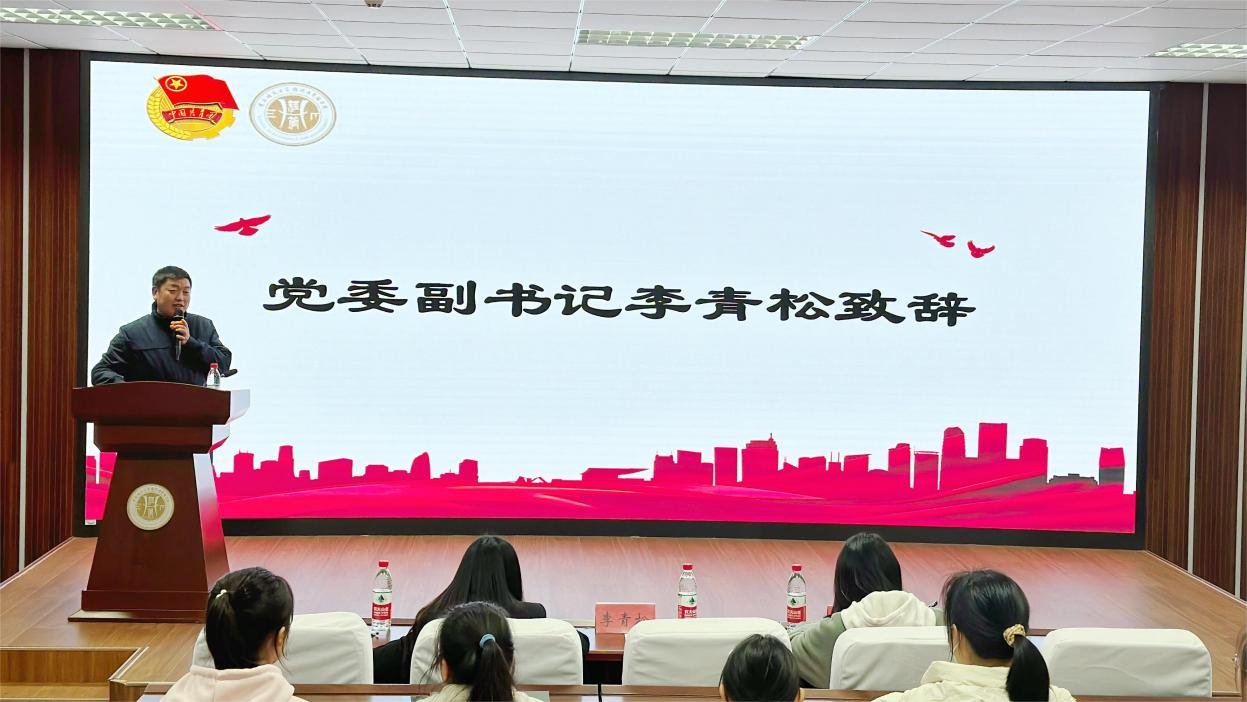 本次开班仪式在全体学员共唱中国共青团团歌拉开序幕。仪式上,李青松书记强调了青马工程的性质是时代化的马克思主义,希望同学们在思想上向党组织靠拢,在行动上要跟随党的领导,不断提高政治素质,自觉践行社会主义核心价值观,并建议同学们积极参加志愿者活动,加强课外实践锻炼。此外,李威老师宣读了录取学员名单并希望大家不负嘱托,明确青马工程的培养目标和要求,在以后的学习和社会服务中发挥作用;同时,学员代表陈启洋发言表示,学员们应当坚定信仰,做马克思主义的传承者,深入学习马克思主义理论,积极投身社会实践。仪式的最后,唐艺珊老师宣布第一期青马中级班正式开班,并鼓励学员们在中级班努力提升自己,共同营造出积极向上、严谨治学的学习氛围。