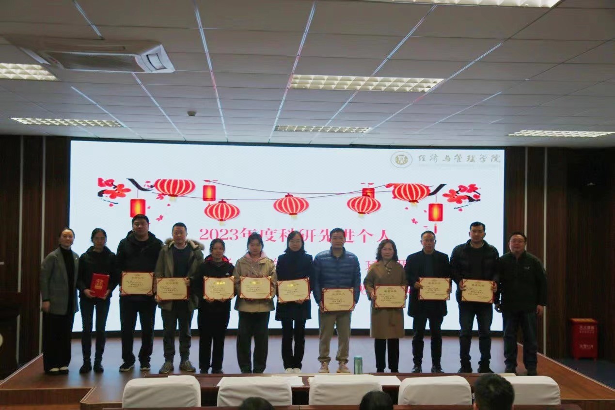 在表彰环节中,学院领导班子分别给在教学、科研、学科建设、学生工作、行政管理等方面取得突出成绩的教职工们颁发“学院科研先进个人”、“学科先进个人”等荣誉证书。