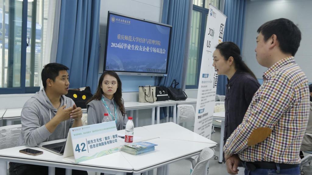 为进一步凝聚校友力量,充分发挥校友资源优势,加强校友企业与学院的交流合作,2024年4月19日,best365网页版登录于求是楼126成功举办校友企业专场双选会。学院2012级校友骆明军、2015级校友王双凤等8名校友代表伊利实业集团股份有限公司、重庆新东方教育培训学校有限公司等6家校友企业受邀参加本次双选会,共计提供43个优质岗位。