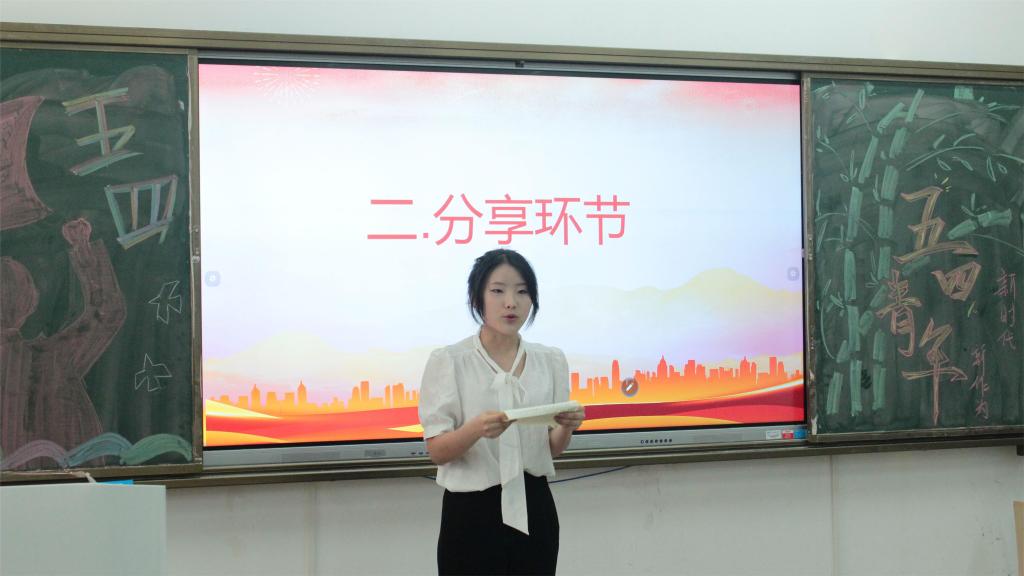 此外,为了让同学们更加深入地了解五四精神和青年节的意义,活动还设置了多个环节。其中包括自愿分享环节,鼓励同学们积极表达自己的见解和感受;知识问答环节,通过提问与回答的形式加深同学们对五四精神的理解;以及“红歌识曲”环节,通过辨识与欣赏红色歌曲,进一步激发同学们对五四精神的情感共鸣。