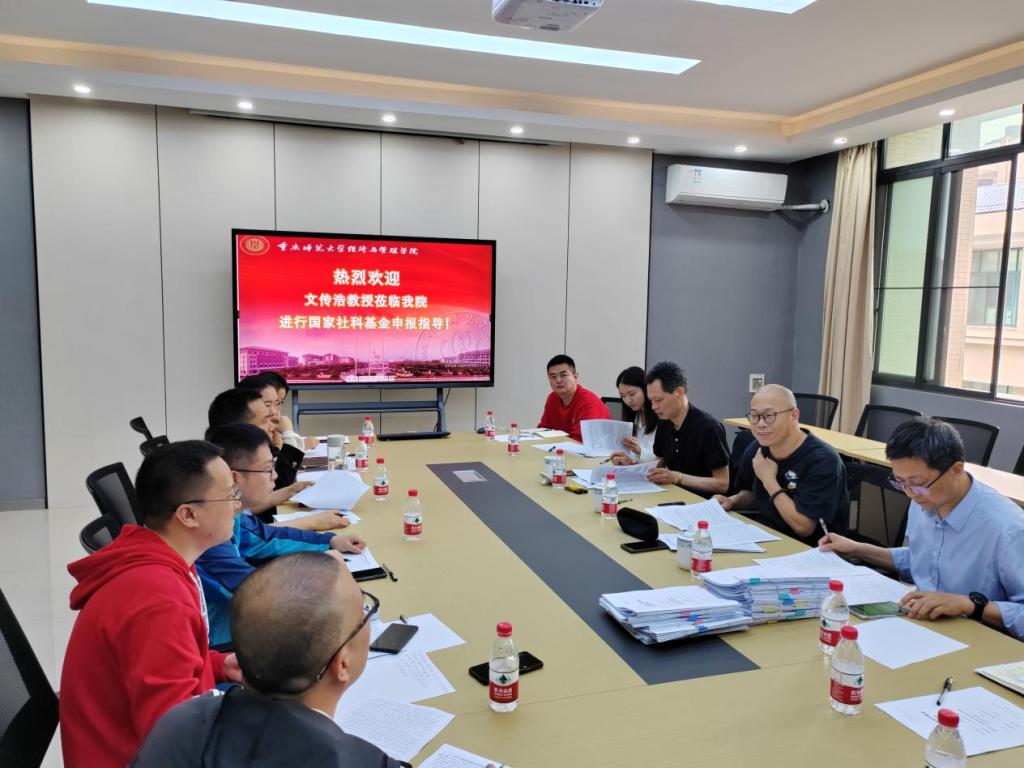 会议伊始,文传浩教授以上游智库团队历年获批项目为典型案例,详细讲解了国家社科基金项目申请书的各项填报内容的写作技巧、呈现方式和注意事项,鼓励老师们坚持以需求侧原则、供给侧原则、创新性原则、简洁性原则指导国家社科基金项目的申报工作。然后,文传浩教授、马文斌教授、胡兵教授共同对每一份申报书的填报内容进行了详细点评,提出了修改建议,并从不同角度阐述了如何提高项目申报论证的科学性、合理性和创新性。本次指导会主题鲜明、内容详实、紧扣国家发展战略进行讲解,具有很强的指导性和实操性,得到参会教师的一致好评。