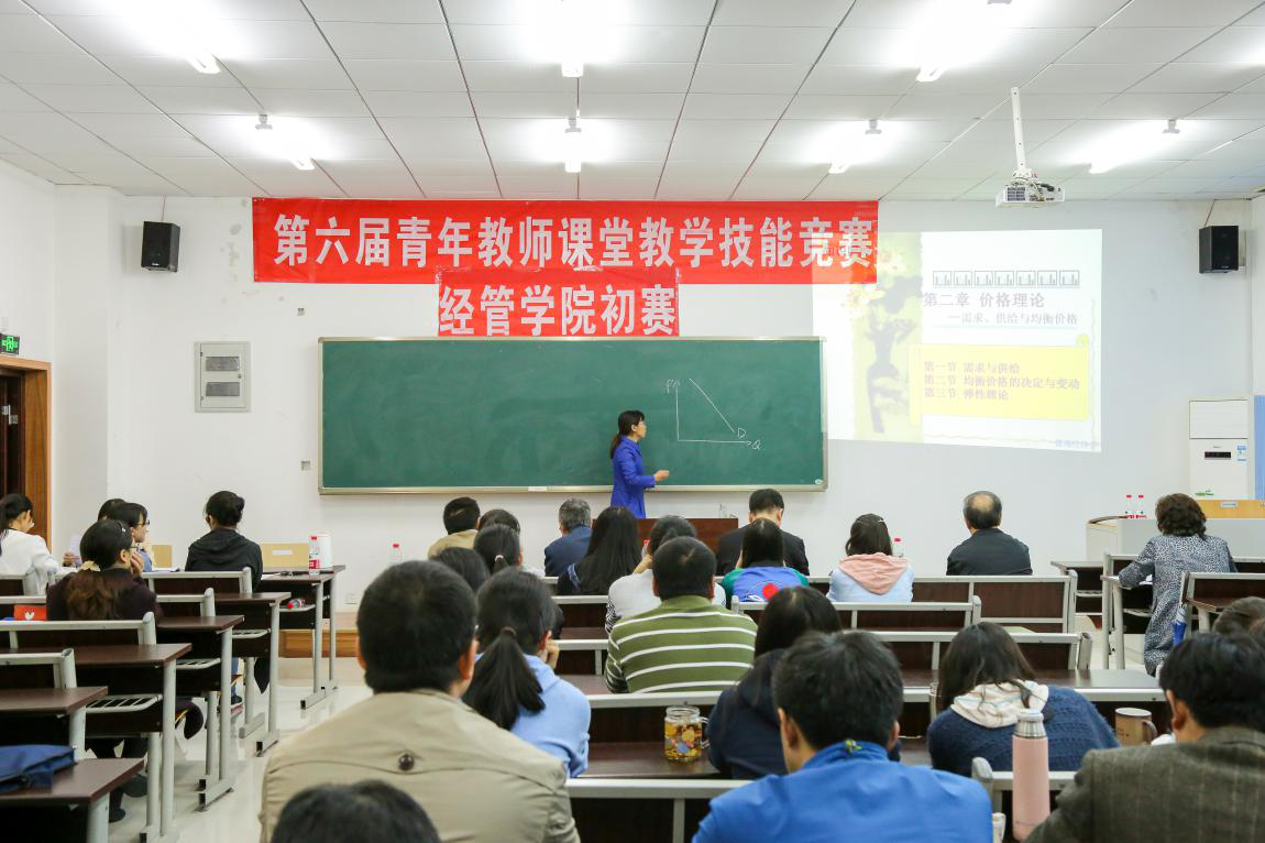 本次竞赛共分为教学设计、课堂教学、教学反思三个板块,全院青年教师积极参赛,精心准备,大胆创新教学手段,课堂讲解精要透彻,师生互动热烈,多媒体教学运用娴熟,目标达成高效。电子商务四大支柱讲解、市场营销环境分析、统计学回归分析、税法与增值税等教学内容详实、案例生动、重点突出、详略得当,表现出我院青年教师先进的教学理念、扎实的教学功底和卓越的教学追求。经过两天激烈竞争,何清、刘然荣获一等奖,薛艳、周鹏飞、段俊、陈宇科荣获二等奖,吴潇航、阳芙蓉、王亚飞、汪翔、彭湘君、史乐峰荣获三等奖。