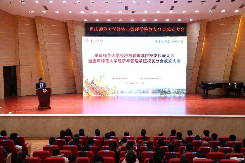 重庆师范大学党委常委、副校长陆远权教授发言,他表示母校的今天是在每一个校友的共同努力下取得的,母校的未来,更需要每一个重师人继续持之以恒,不懈奋斗。希望校友们能够通过校友会这个平台,回望艰辛之路,共忆峥嵘岁月,印证优质人生,一起呵护、建设校友会这个温馨的大家庭。