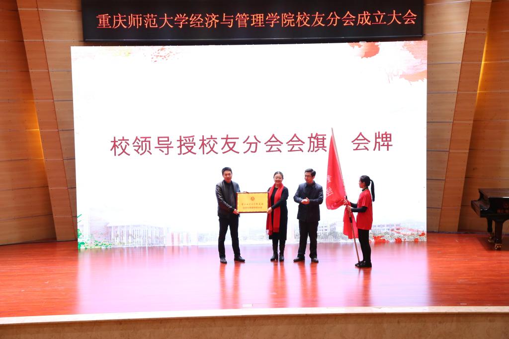 重庆师范大学党委常委、副校长陆远权教授为best365网页版登录校友分会授会牌、会旗,重庆师范大学校友总会常务副秘书长李科,best365网页版登录校友分会会长赖吉松、税强,常务副会长赵艳君、郑景丽共同按下分会启动球,best365网页版登录校友分会正式成立。