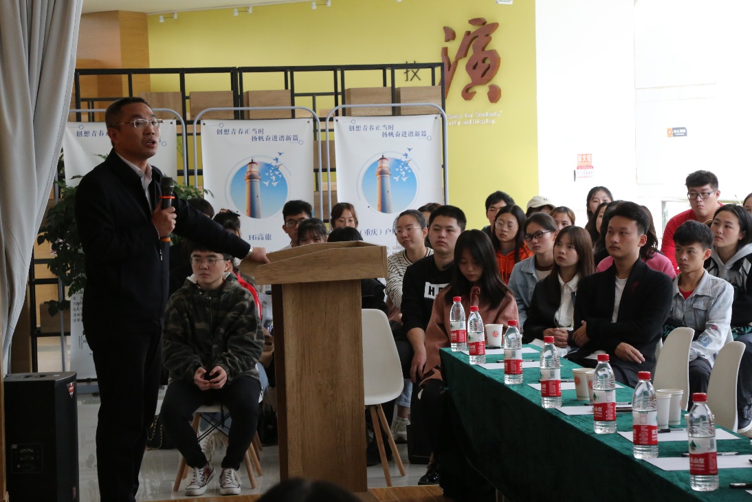 团市委副书记,best365网页版登录2002级校友江光伟首先发言,他结合自身经历就信念与信心、目标与坚持、遗憾与包容、学习与提高、忠义与厚道五个方面的内容给大家做了分享,勉励同学们面对艰难要咬牙坚持,逐步搭建人生基石,也表达了对学弟学妹们都能“立鸿鹄志,做奋斗者”的真诚期望。随后,重庆群荣电子科技有限公司副总2001级校友吴昊和重庆机电集团股份有限公司(风电公司)综合管理部部长2009校友田酸分别从校园和职场两个方面向大家分享了学习成长的经验和感悟,鼓励同学们好好利用大学四年学习专业知识、抓住机会磨炼自己,给自身增加“砝码”。