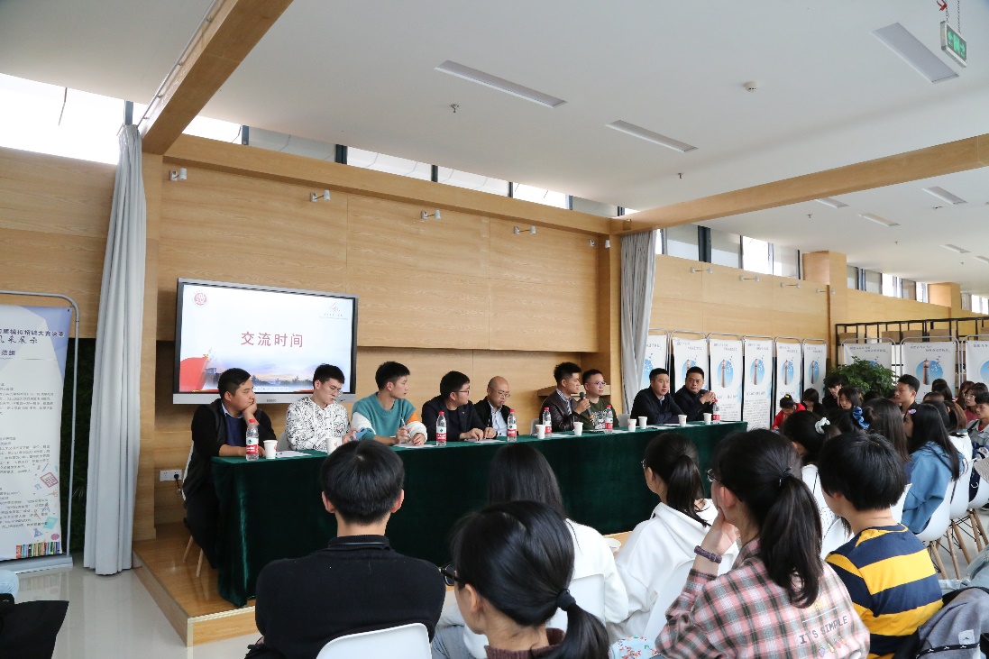问答环节里,同学们踊跃提问,就学习规划、考研、公招考试、就业等学生关注的话题,请教学长。校友针对学生的问题分别做出了详细回答,并鼓励学生从多角度提升包装自己,强化自身优势,补足短板。