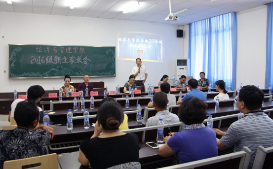 下午4点许,会议在阵阵掌声中正式开始。会上,我院院长田盈对学院的基本情况进行详细介绍,并强调我院是学校发展最快规模最大的学院之一,拥有众多的专业选择、广阔的深造空间、强大的师资力量和优异的住宿条件。并就绝大多数新生难以适应灵活的学分制学习问题来提醒家长们,应叮嘱孩子注重学分情况、考出良好成绩。同时强调我院经过精心设计的培养方案会有助于学生们多方面的学习,融入大学的氛围当中。
