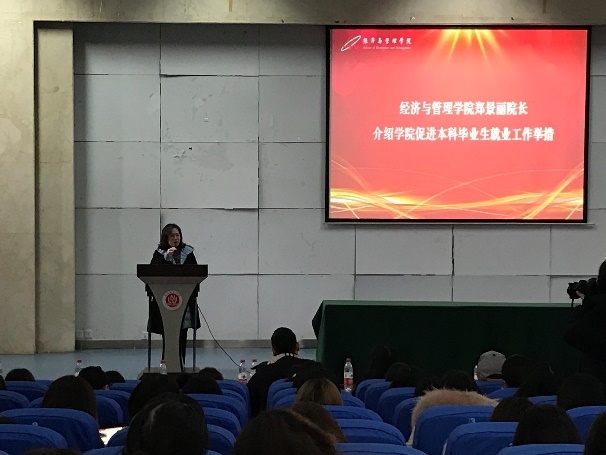 随后,郑景丽副院长介绍了学院促进本科毕业生就业的工作举措,包括成立专门毕业生就业创业小组、建立教师全员参与学生就业工作激励机制、提高学院学生就业统筹、拓宽就业渠道、持续整合校友资源等措施,之后,郑景丽副院长结合自身学习工作经历,鼓励同学们要勇敢拥抱职业生涯的不确定性,端正就业观,认清就业形势,提高自己的专业能力和技能水平,积极就业、主动就业。