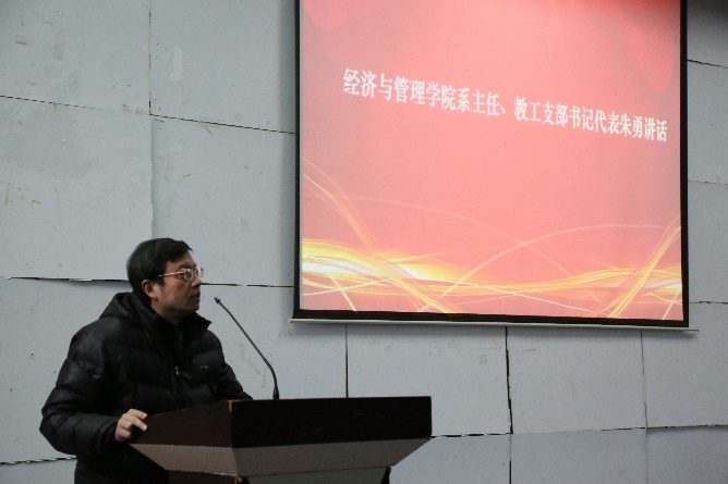 紧接着,学院系主任、教工支部书记代表朱勇教授发表讲话。朱勇教授主要从“三个协同,四个努力”出发,向同学们阐述了“学校和学院、辅导员和专业老师、本科生导师和学生自身”三对协同关系及“学校、学院、老师、学生”四者的努力对毕业生就业的影响,鼓励大家要敢于和老师交流,寻求老师的帮助,听取老师的意见。