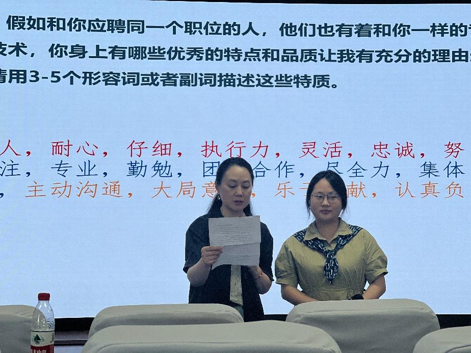 随后,钟敏书记从个人基本信息、求职意向、教育经历、实践经验、能力特长、自我评价等方面教授如何填写一份优秀的简历以在面试中脱颖而出。为增强同学们的参与感与体验感,钟敏书记现场邀请同学进行面试模拟,面对面指出在面试中应注意的问题与“雷区”。