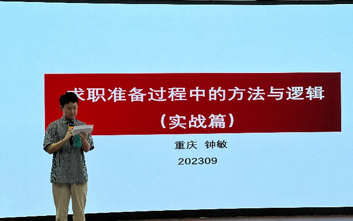 本次讲座以“求职过程中的方法与逻辑”为主题。首先,钟敏书记针对目前就业形势进行了深入分析,从明尼苏达工作适应论、胜任力模型、冰山模型等底层逻辑的角度引出求职的基本逻辑,提出个人应具备网络信息搜索、阅读、社交等软技能与硬技能。